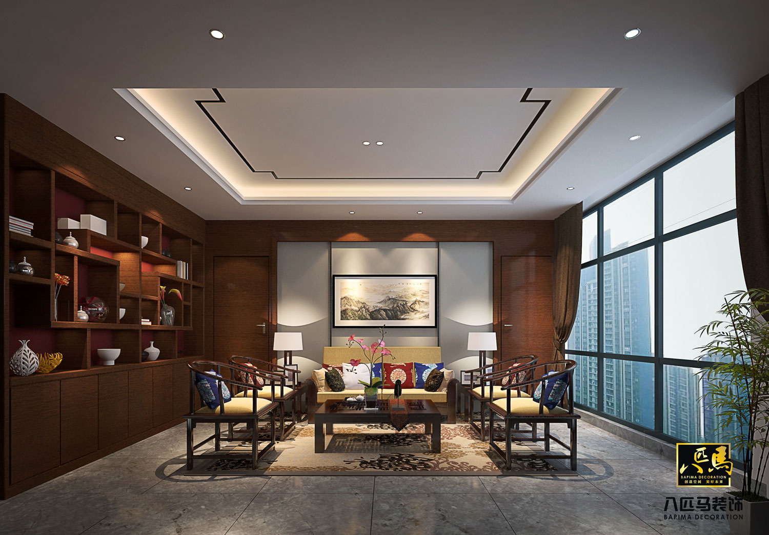 設(shè)計風格:該司的辦公室設(shè)計風格為新中式風格,運用大理石、木飾面、金屬線條及實木地板等中式元素加上現(xiàn)代元素的設(shè)計理念,時尚不失典雅,開放辦公區(qū)采用裸頂方式,提高空間層高,讓空間更通透更舒適。