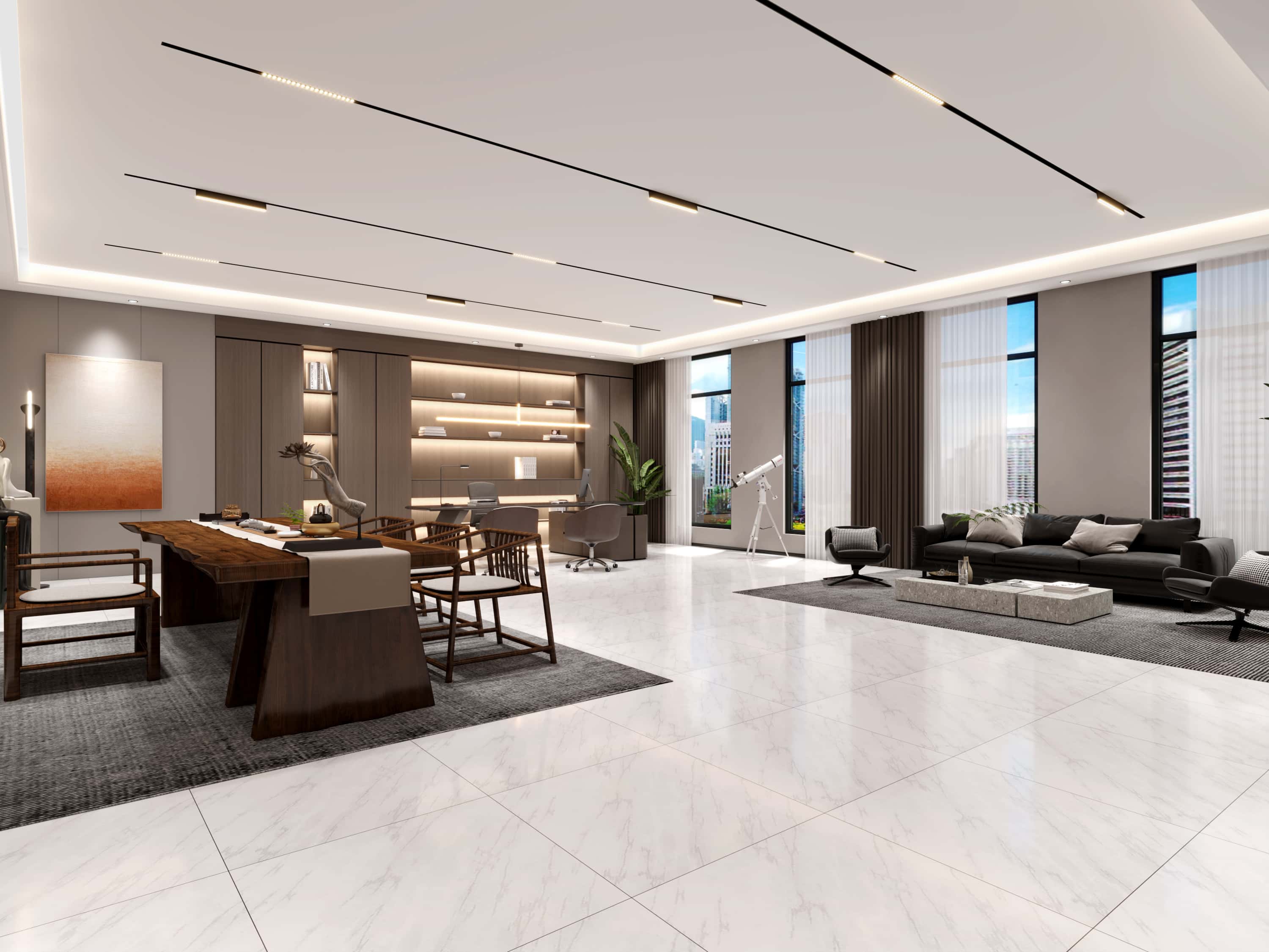 辦公區(qū),空間寬敞,家具擺放合理,采光良好。中式風(fēng)格的辦公桌椅與現(xiàn)代辦公設(shè)施結(jié)合,營造出獨(dú)特的辦公環(huán)境。