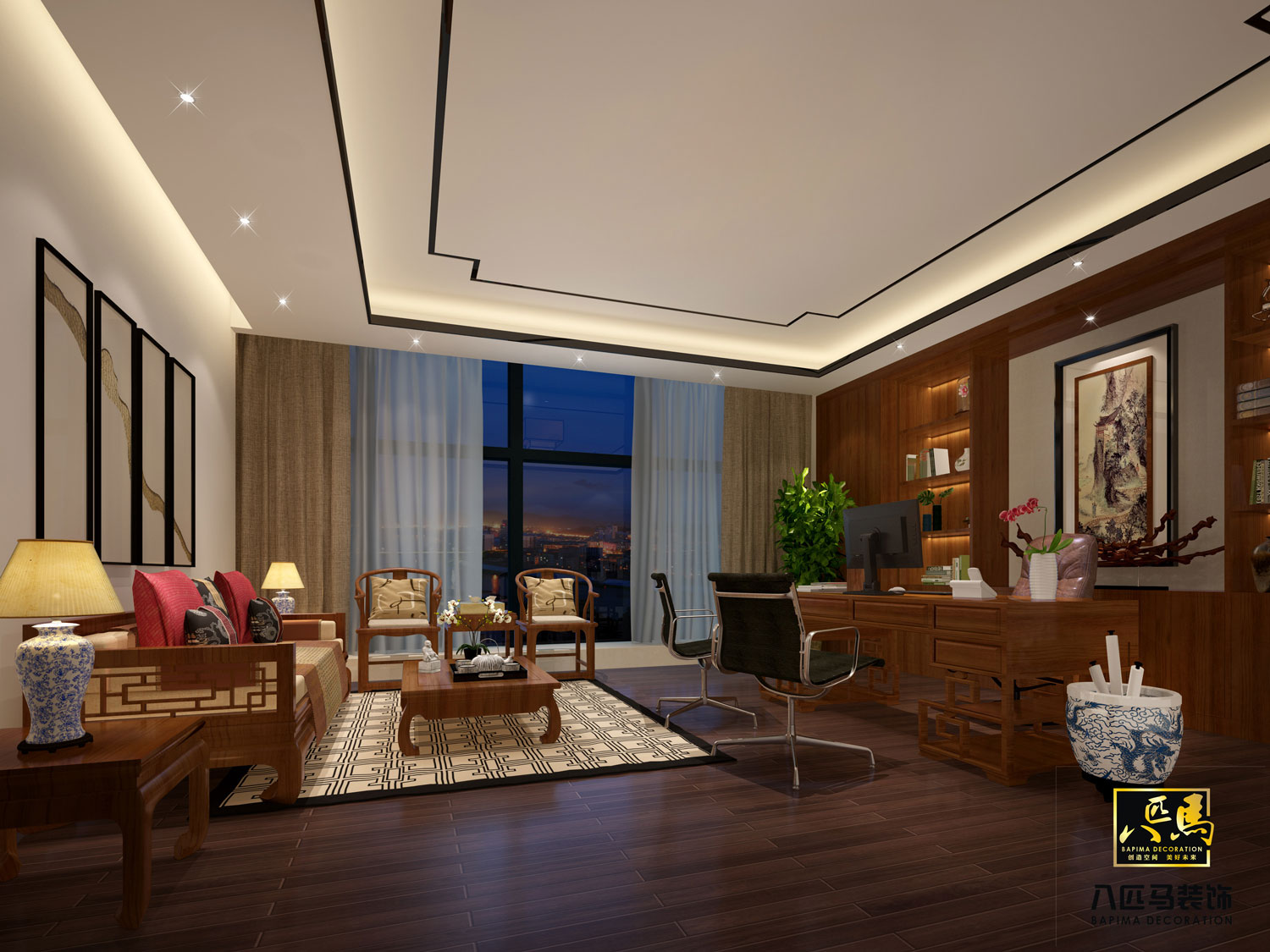 設(shè)計風格:該司的辦公室設(shè)計風格為新中式風格,運用大理石、木飾面、金屬線條及實木地板等中式元素加上現(xiàn)代元素的設(shè)計理念,時尚不失典雅,開放辦公區(qū)采用裸頂方式,提高空間層高,讓空間更通透更舒適。