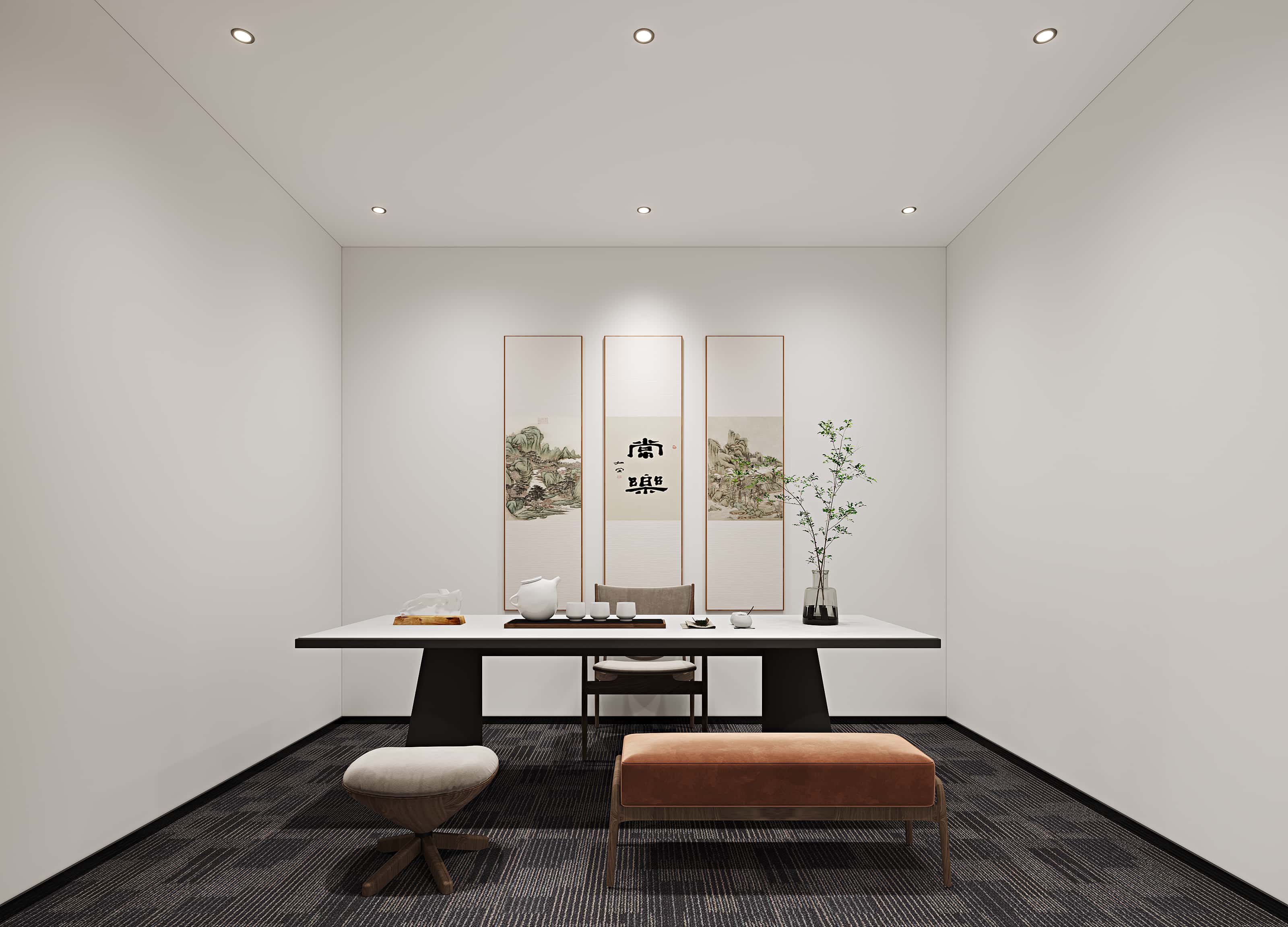 此外,還設(shè)有中式風(fēng)格的茶室,靜謐雅致,為員工提供放松交流的空間。整體設(shè)計(jì)通過色彩與功能區(qū)域的合理搭配,打造出一個(gè)舒適、高效且富有活力的辦公環(huán)境。
