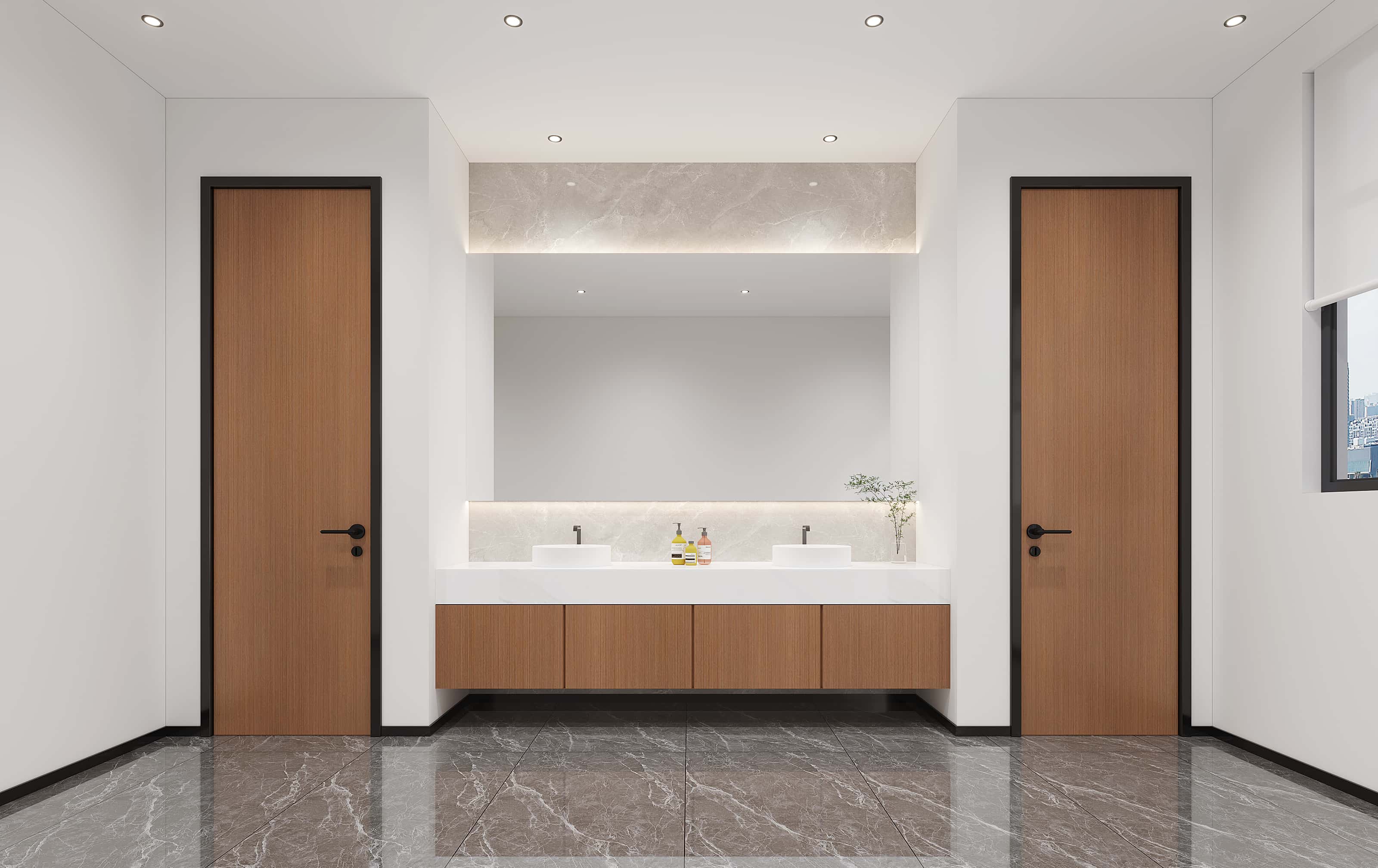 前臺區(qū)域,白色大理石搭配木質(zhì)元素,簡潔大氣,彰顯企業(yè)形象。辦公區(qū)以白色為主色調(diào),搭配綠植和藍(lán)色點(diǎn)綴,營造清新明亮氛圍,提升工作舒適度與效率。會議室配備大屏幕,滿足現(xiàn)代辦公需求,兩側(cè)書架增添文化氣息。領(lǐng)導(dǎo)辦公室則融入中式元素,如山水畫、木質(zhì)家具等,展現(xiàn)沉穩(wěn)與雅致,同時配備舒適辦公家具,打造愜意辦公空間。整體設(shè)計既注重功能性,又體現(xiàn)了企業(yè)的文化與品味。