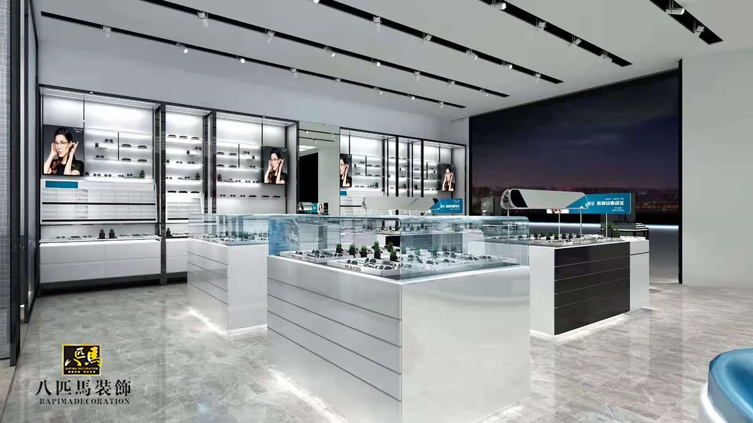 設(shè)計(jì)風(fēng)格:打造顧客休閑購(gòu)買潮流時(shí)尚的科技風(fēng)眼鏡,給進(jìn)店客戶以清晰、強(qiáng)烈的感覺。簡(jiǎn)潔、明快吸引客戶注意力