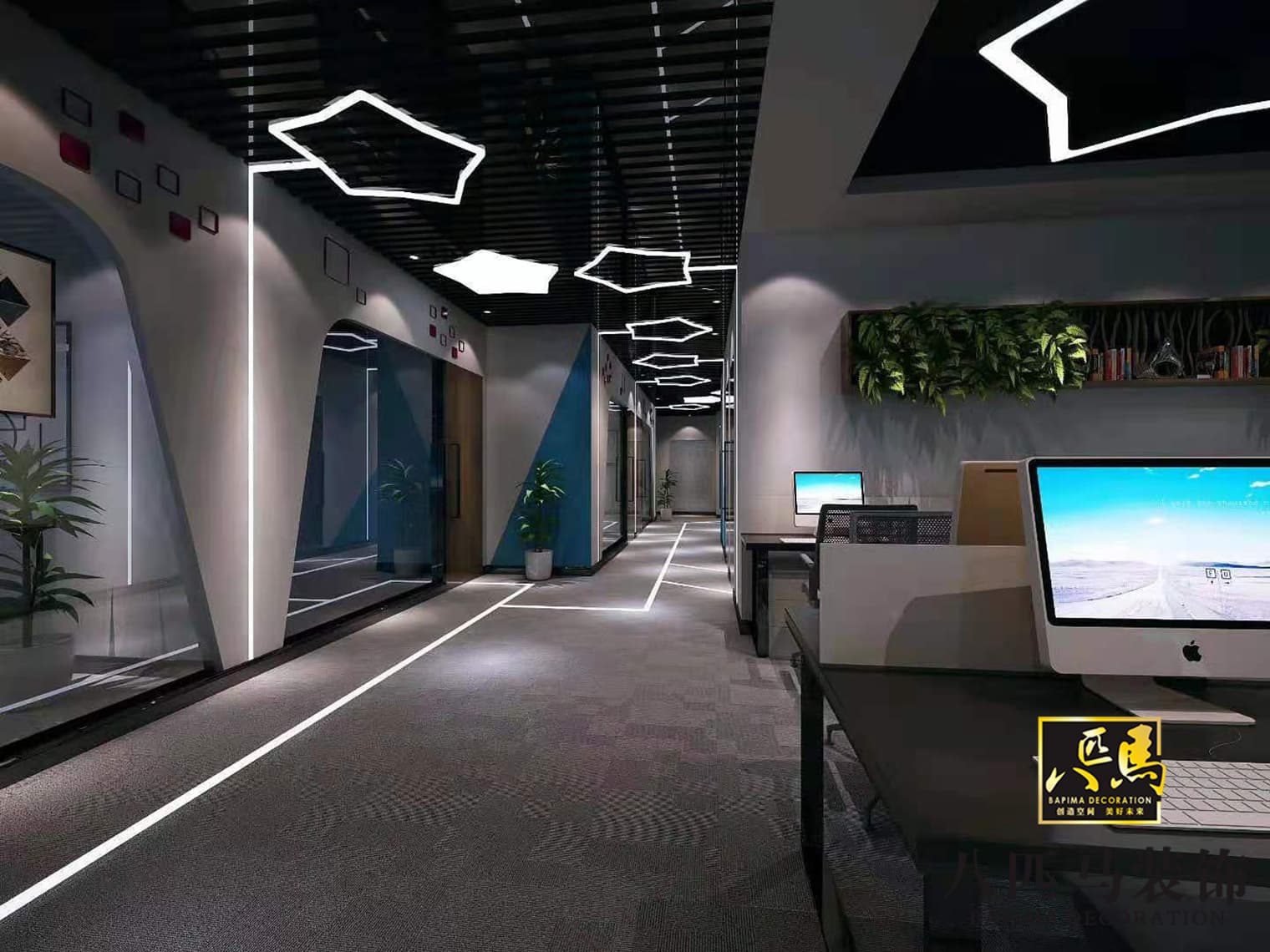 設計風格:科技類型辦公空間,極具現代科技感的,實用、簡潔,富有韻味的工業(yè)科技風定位。